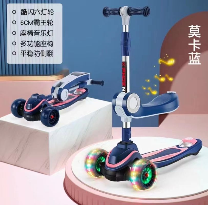 The design concept of this model children's scooter can not only exercise the child's body and coordinate the body's flexibility, but also improve the child's reaction ability. By periodically kicking the ground with the feet, it gives power to the car and pushes the car to slide forward. It can exercise the child's Flexibility, balance, improve reaction speed, and strengthen body coordination.